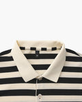 The Shoreline Polo is where refined meets relaxed. With bold stripes and a vintage-inspired contrast collar, this elevated knit polo delivers Riviera charm with everyday wearability. Crafted in textured ribbed fabric that holds shape and adds depth, it’s perfect for brunch, beach walks, or breezy evenings out. Dress it up with trousers or keep it effortless with shorts – this one’s built for versatile statements.
