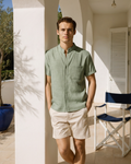 A perfect blend of modern ease and classic refinement, this mandarin-collar shirt exudes quiet sophistication. Its breathable fabric and relaxed silhouette make it an essential for warm-weather styling, whether layered under a blazer or worn solo for a polished off-duty look. Rolled sleeves and subtle texture add depth, making it a go-to for understated elegance.